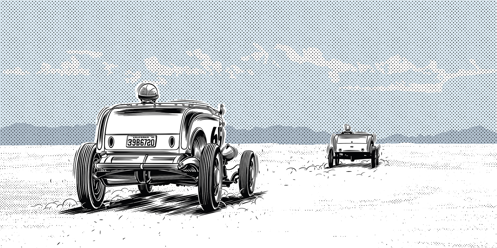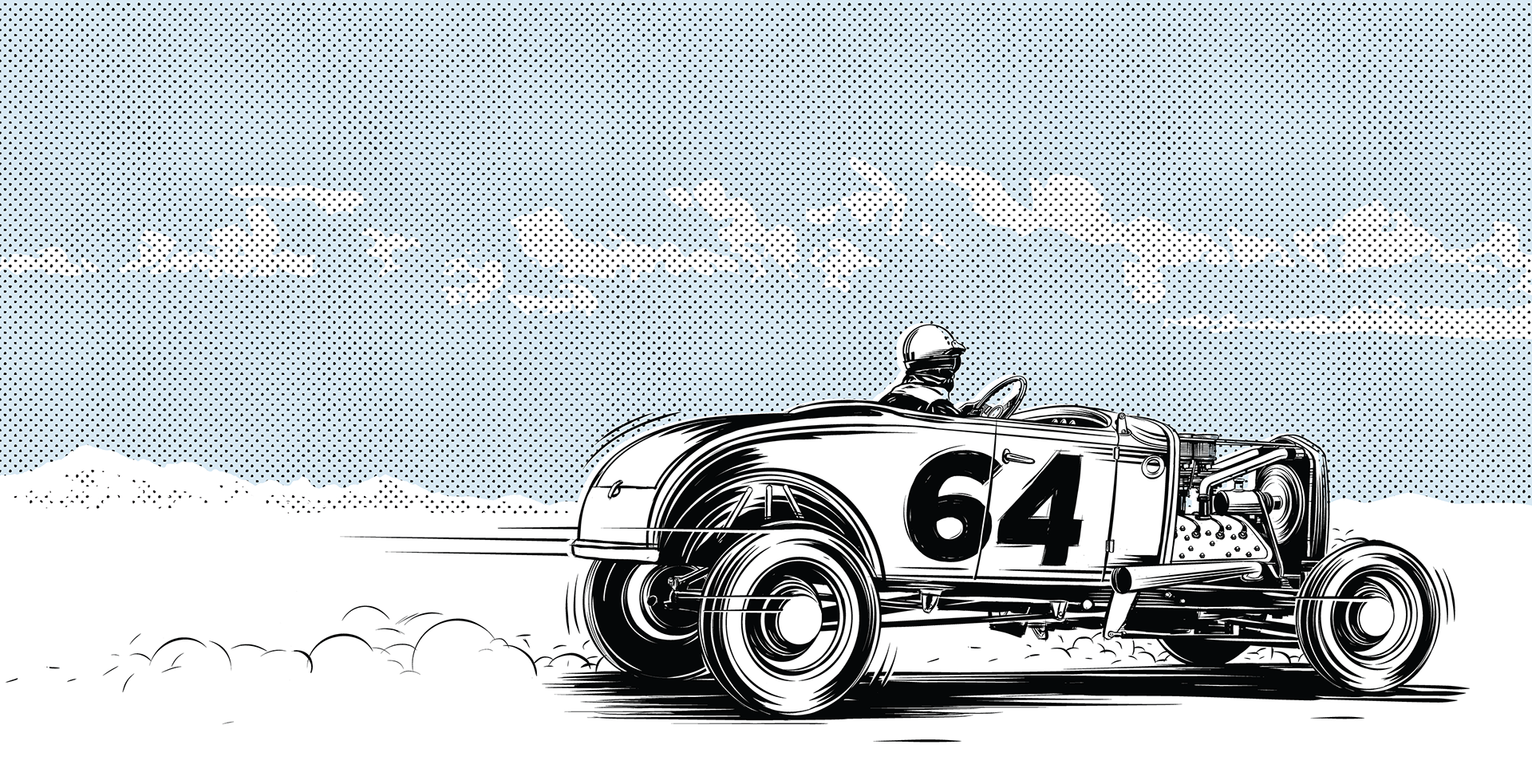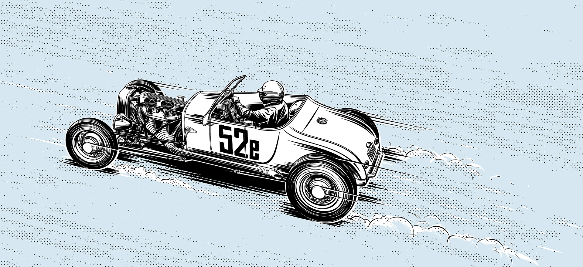 With theĀ resurgence of hot rod beach and track racingĀ in select events across the globe, I decided it was time to produce some illustrations inspired by those traditional, stripped down machines. I really wanted to capture the speed and style in a somewhat minimalistic way. Whether the surface is sand, salt or dirt, this new generation of racers are having as much fun as their vintage machines will allow!