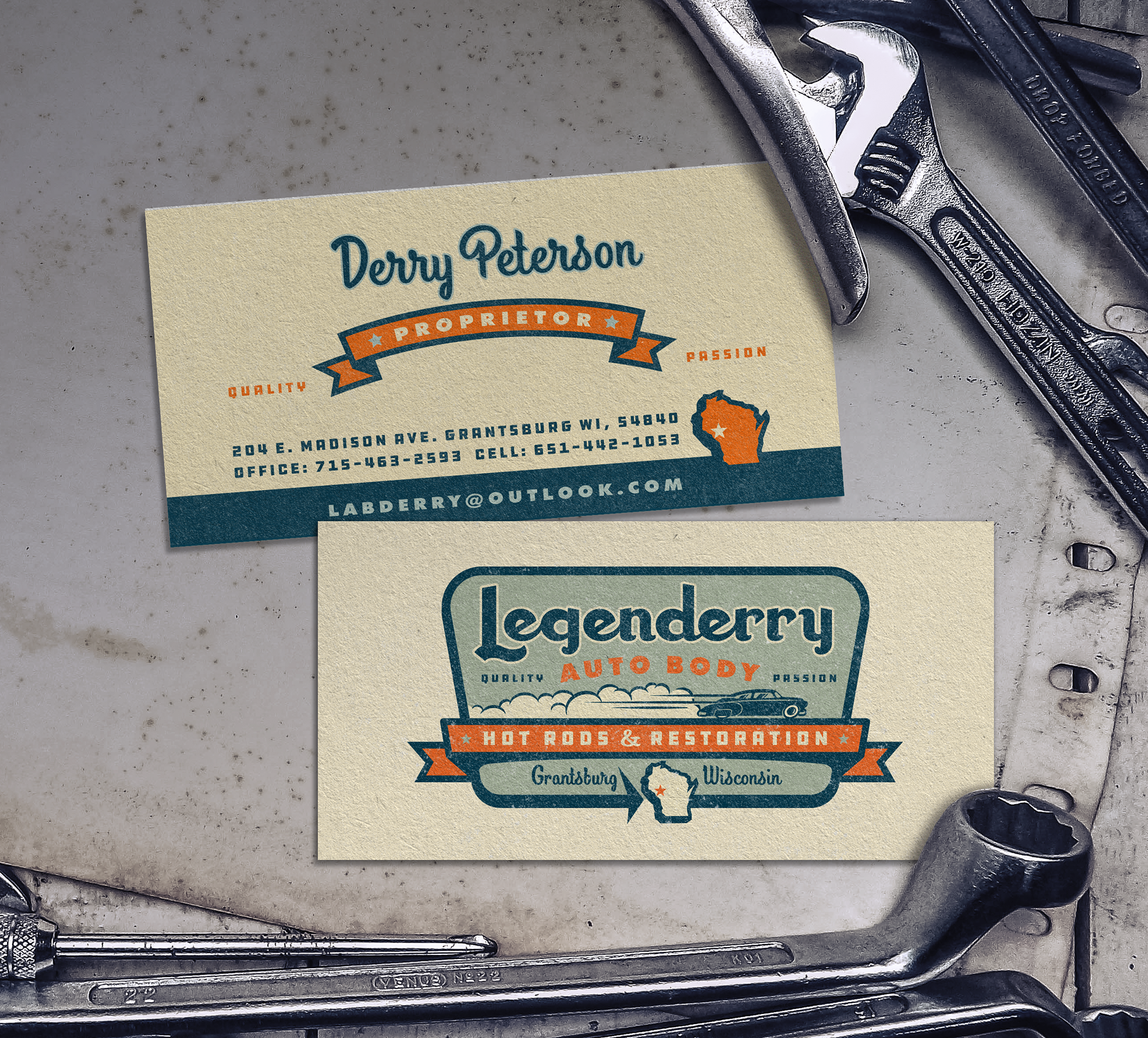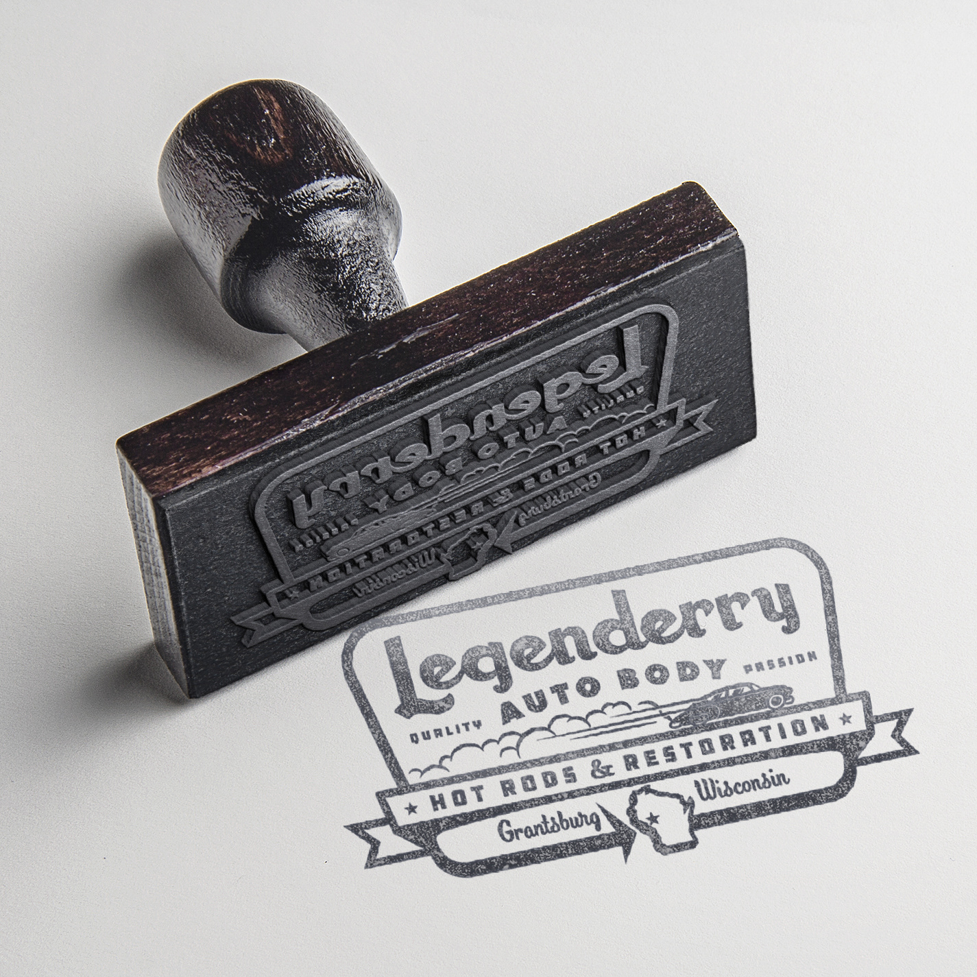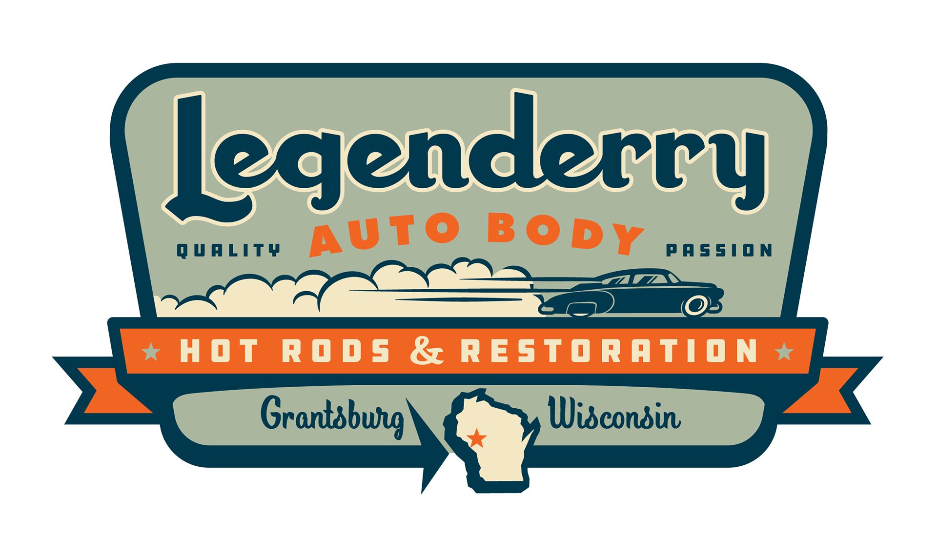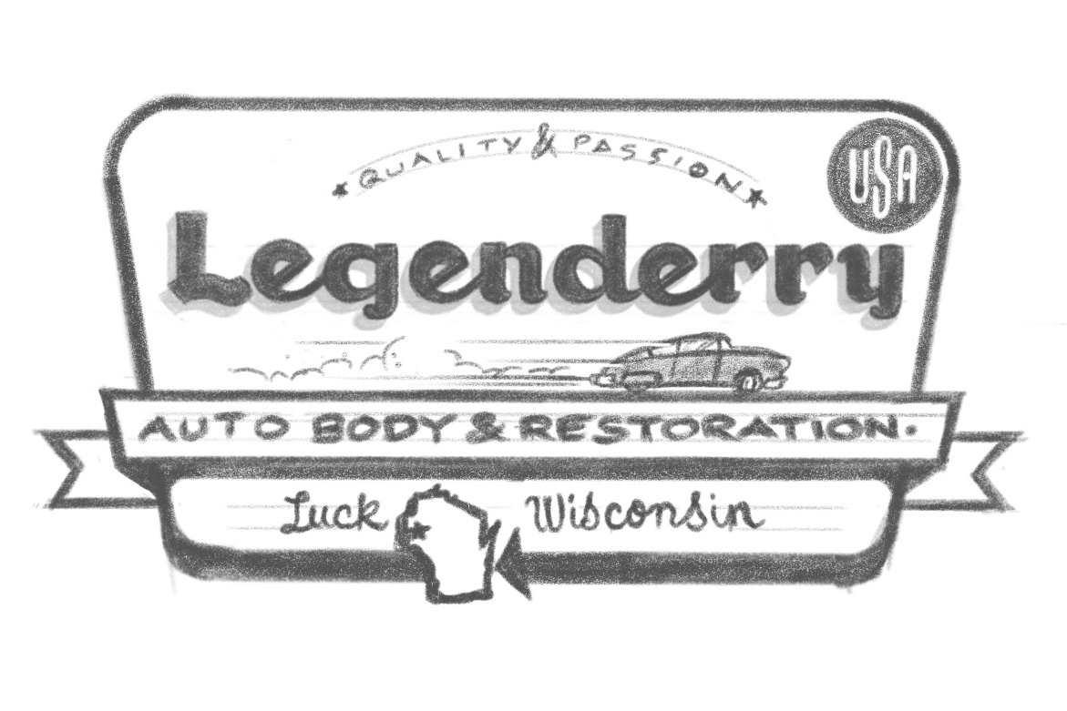 Legenderry Auto Body based in Grantsburg, Wisconsin showcases the dedication to craftsmanship, quality and passion of automotive painter and hot rod enthusiast, Derry Peterson. Legenderry sought a flexible brand identity that reflected their traditional aesthetic and old-world work ethic.